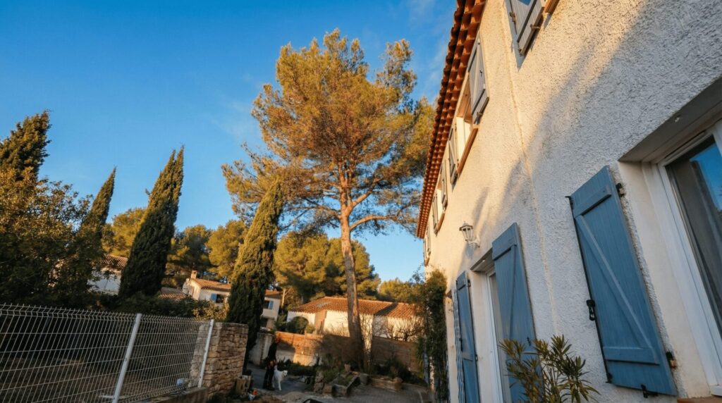 Intervention complète en 2 jours à Aix-en-Provence avec abattage d’un arbre et élagage de plusieurs végétaux pour un jardin plus lumineux, aéré et harmonieux.