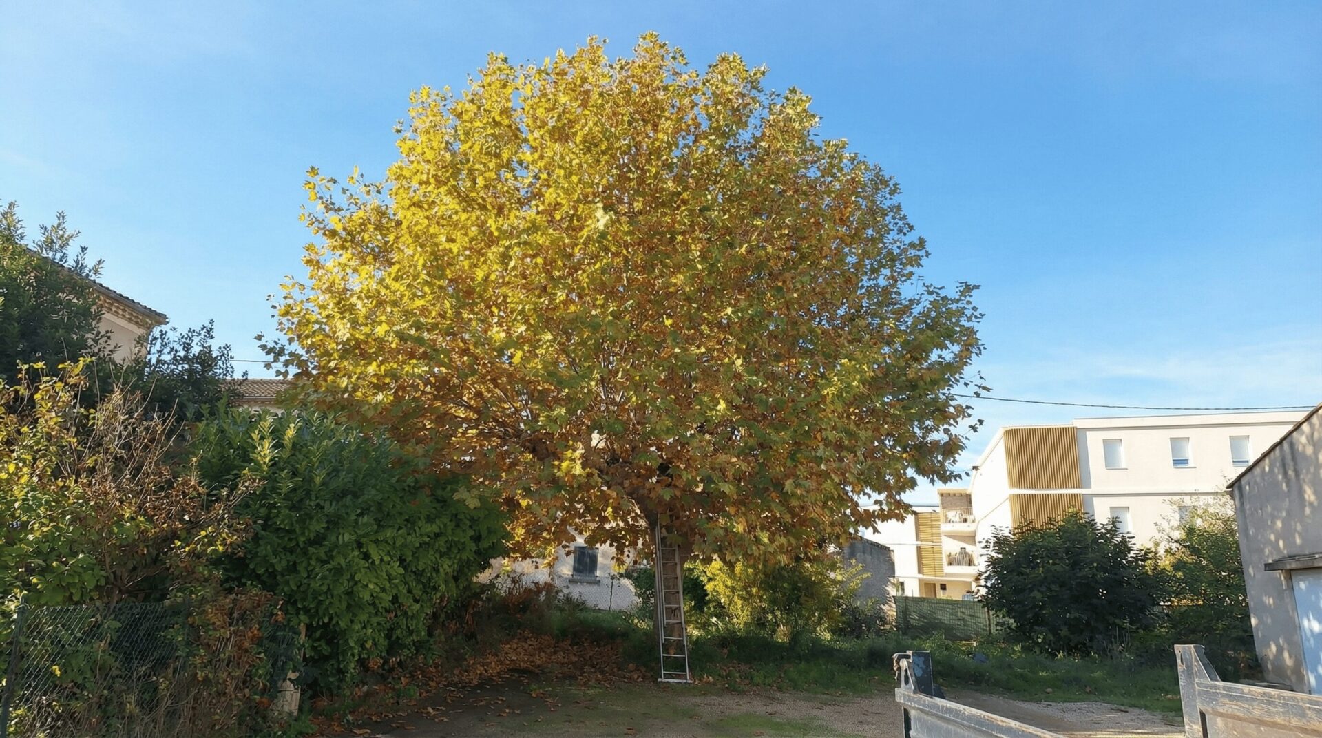 Ce chantier à Marignane concernait l’élagage d’un platane nécessitant une taille d’entretien adaptée à la saison. Le platane, arbre emblématique du sud de la France, requiert une attention particulière et un savoir-faire spécifique pour garantir sa pérennité. Notre équipe d’élagueurs qualifiés a réalisé une coupe de saison respectant le cycle végétatif de l’arbre. Cette intervention au bon moment de l’année permet de limiter le stress pour le platane et favorise une cicatrisation optimale des plaies de taille. Nous avons procédé à l’allègement de la couronne, à la suppression des branches mortes ou mal orientées, et à la réduction des parties en surplomb. L’élagage a été effectué selon les règles de l’art en arboriculture, en respectant les angles de coupe, les distances par rapport au collet et en préservant l’équilibre architectural de l’arbre. Cette taille raisonnée permet de contrôler le développement du platane, d’améliorer sa structure et de prévenir les risques de casse de branches. Le chantier s’est conclu par l’évacuation complète des branches coupées, laissant le terrain propre. Le platane retrouve ainsi une silhouette harmonieuse et sera en meilleure santé pour les années à venir.